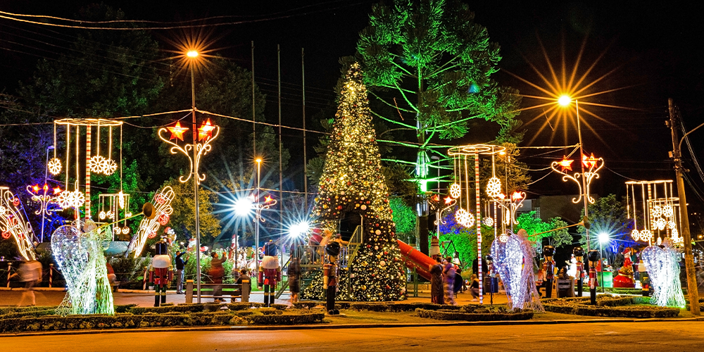 Conhecida como a "Suíça Brasileira", Campos do Jordão é um dos destinos mais charmosos da Serra da Mantiqueira. Durante o período de Natal, a cidade se transforma em um verdadeiro conto de fadas: ruas decoradas com luzes cintilantes, apresentações culturais, feiras natalinas e a tradicional "Decoração de Natal da Praça Capivari" encantam visitantes de todas as idades. O clima ameno de montanha, aliado à arquitetura europeia e à gastronomia requintada, torna a experiência ainda mais mágica. É o destino perfeito para quem busca romance, conforto e o verdadeiro espírito natalino em meio à natureza.